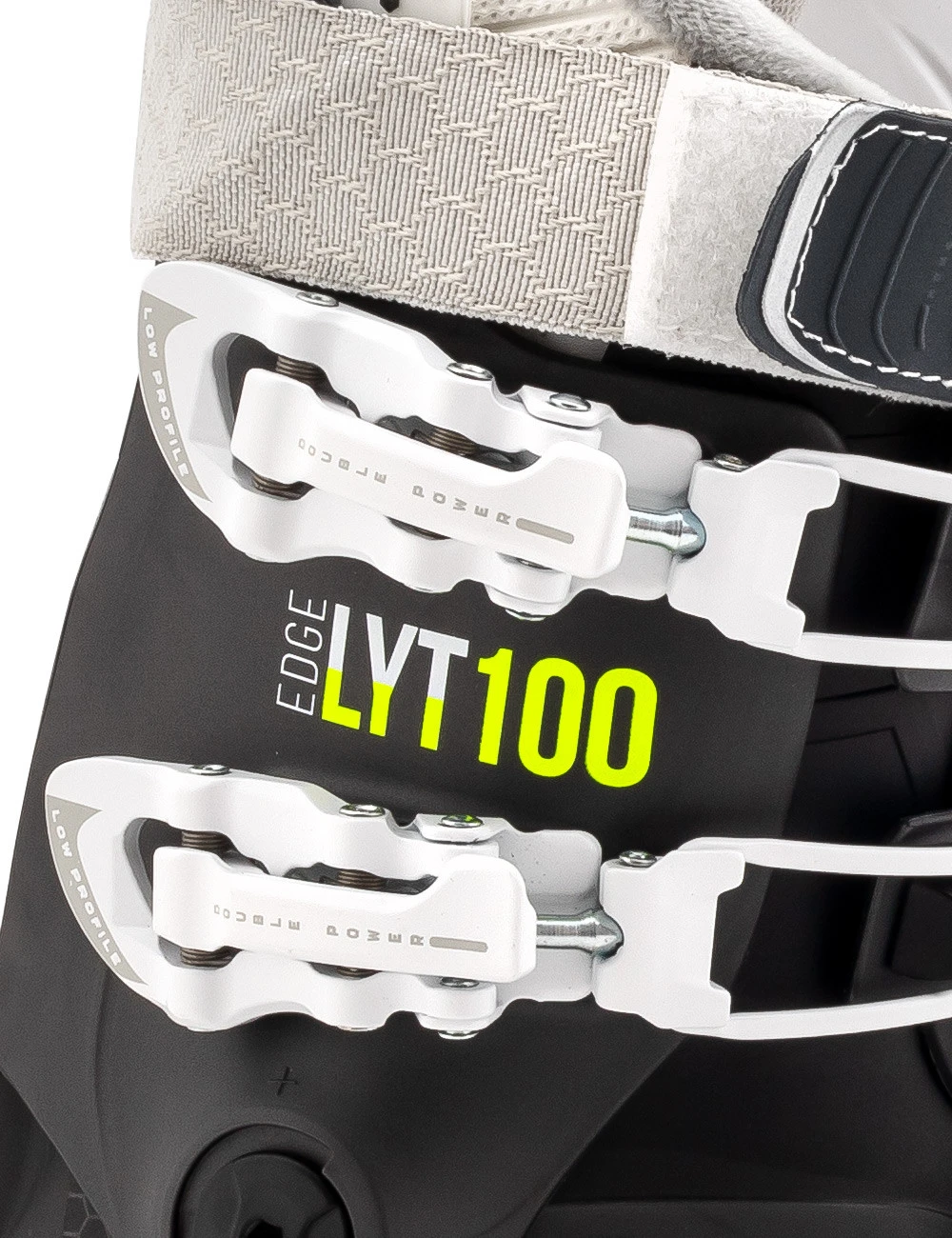 EDGE LYT 100 W został uzbrojony w regulację flexu Flex Tuning w zakresie sztywności 90 – 100 – mechanizm śrubowy umieszczony w pionowej osi tyłu cholewki, który łączy ją z dolną częścią skorupy.