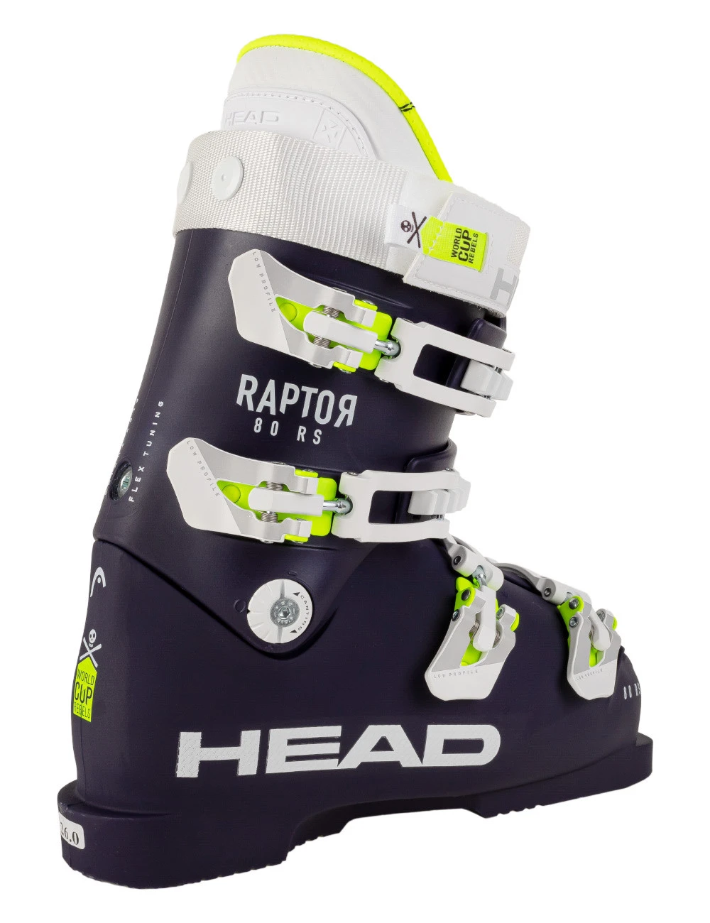 Head Raptor 80 RS W uzbrojony został w regulację flexu Flex Tuning w zakresie sztywności 70 – 80 – mechanizm śrubowy umieszczony w pionowej osi tylnej części cholewki.