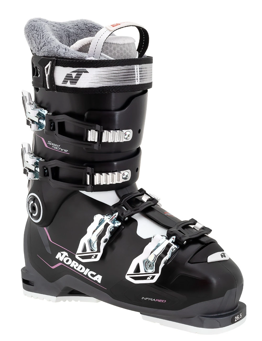 Cała seria butów narciarskich SPEEDMACHINE posiada zoptymalizowane wymiary skorupy (szerokość 100mm przy rozmiarze samplowym 26.5) oraz uniwersalny profil pozwala pomieścić stopy o dużej objętości.