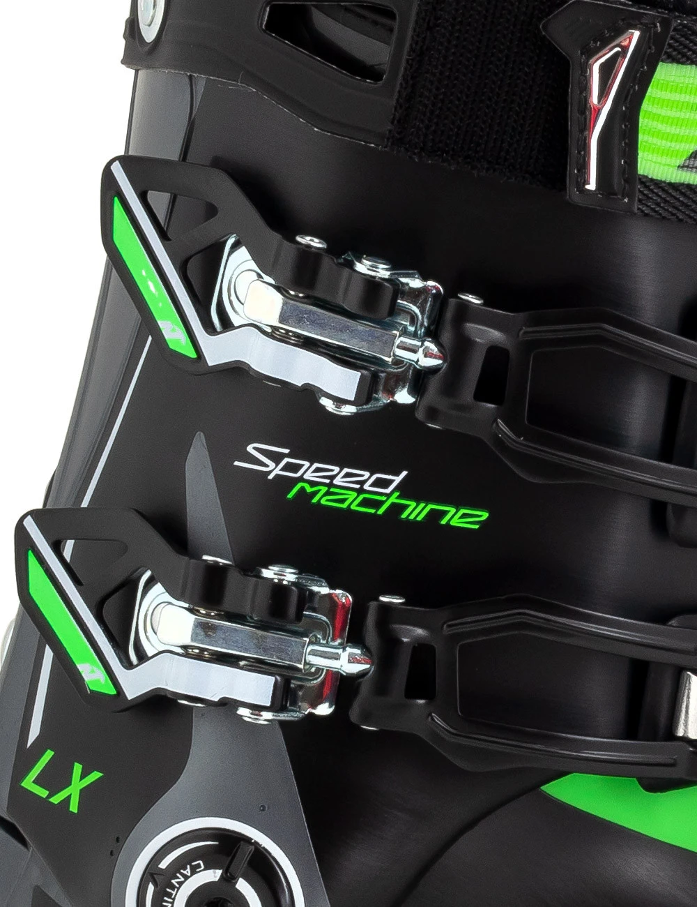 Cała seria butów narciarskich SPEEDMACHINE posiada zoptymalizowane wymiary skorupy (szerokość 100mm przy rozmiarze samplowym 26.5) oraz uniwersalny profil pozwala pomieścić stopy o dużej objętości.