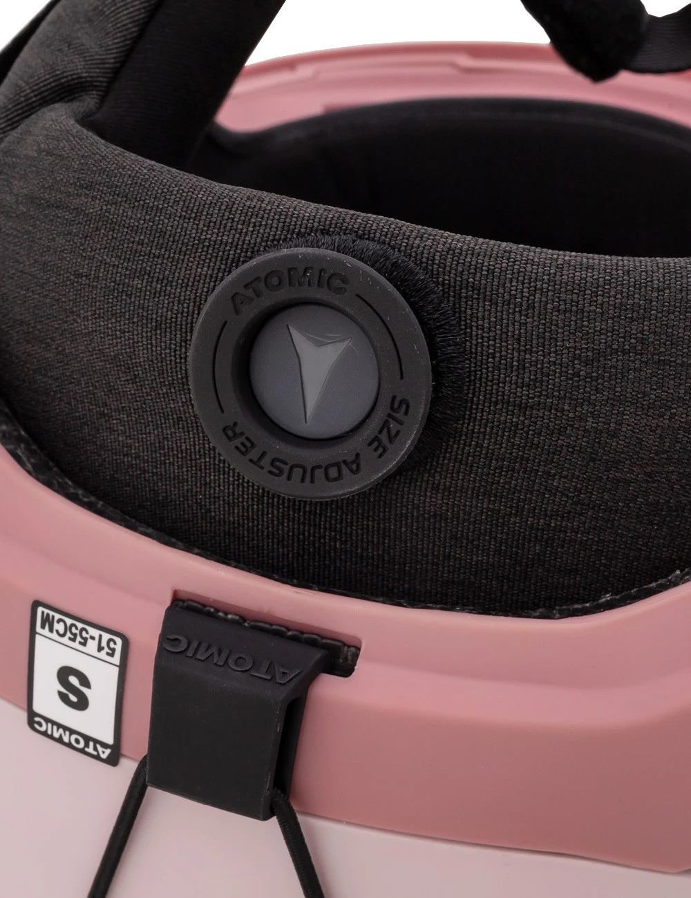 Kask Atomic Four Amid posiada także możliwość dopasowania kasku nie tylko do obwodu, ale również do kształtu głowy. Odpowiednie dopasowanie (możliwość zwiększenia lub zmniejszenia obwodu) wykonuje się za pomocą pokrętła umieszczone w tylnej części kasku. Regulacja jest bardzo łatwa i można ją wykonać nawet bez ściągania rękawic narciarskich.