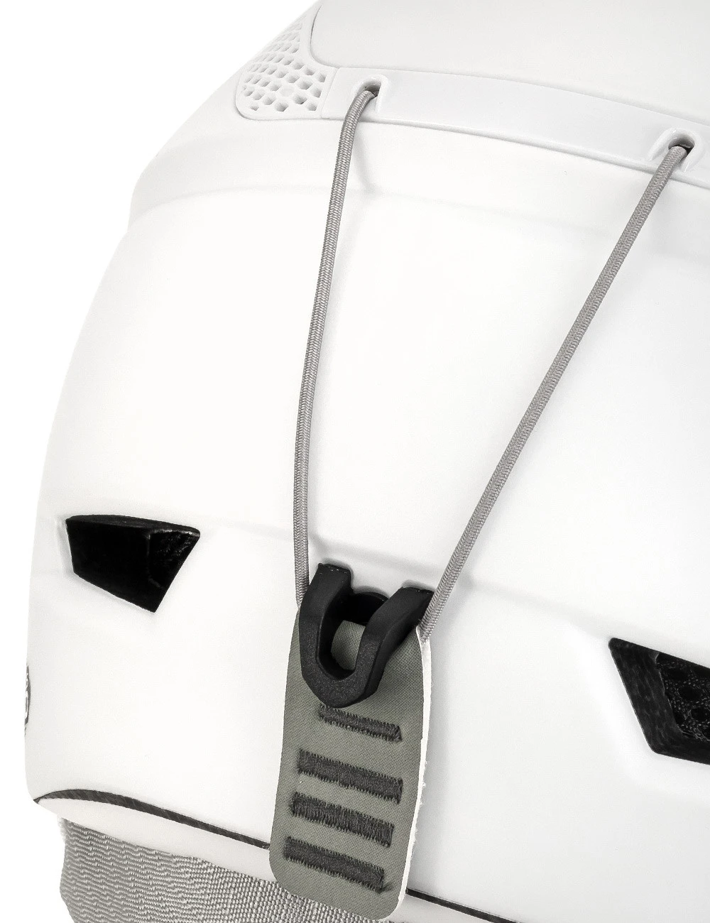 Kask narciarski Icon posiada wbudowany zaczep, który umożliwia stabilne mocowanie gogli i zapobiega ich zsuwaniu się.