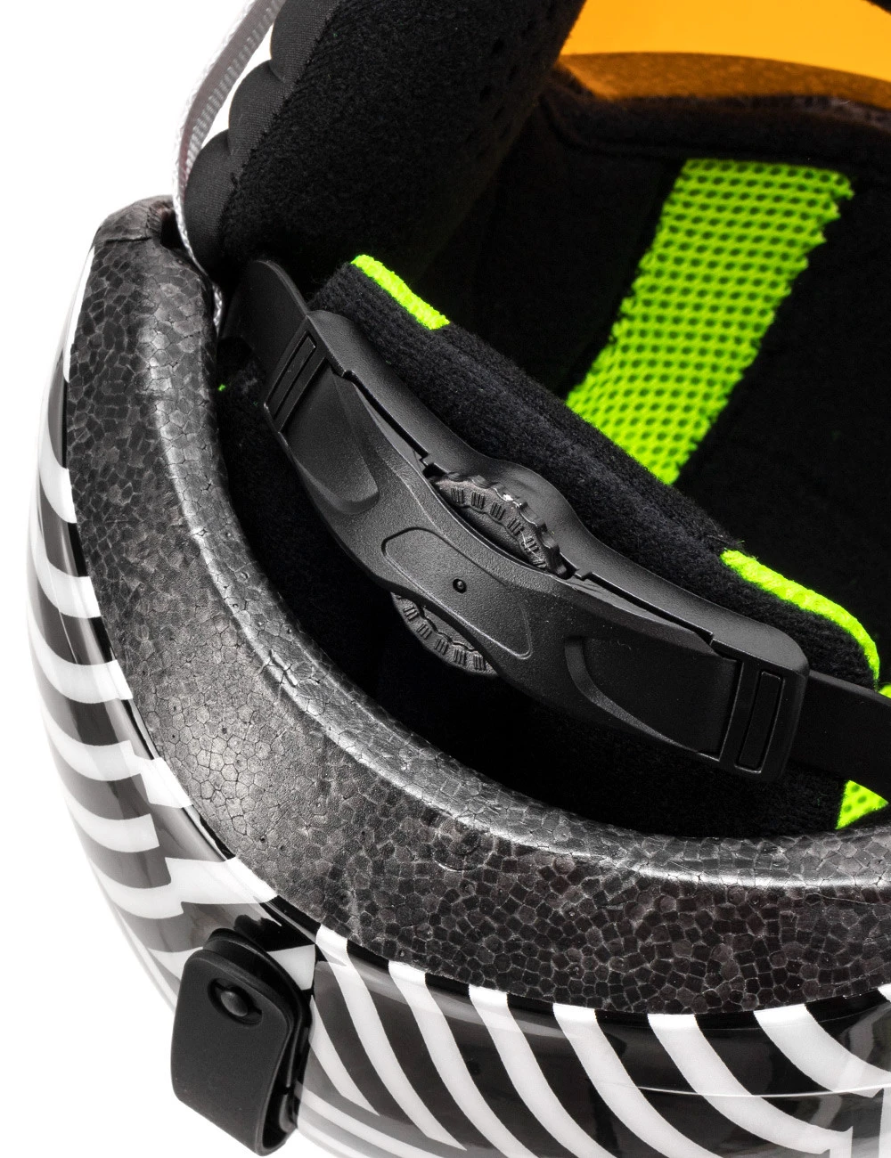 Bezpieczeństwo dzieci jest szczególnie ważne dla tego skorupa modelu Head Mojo Visor została wykonana w technologii IN-MOULD. Oznacza to, że obie warstwy, czyli skorupa oraz wyściółka są ze sobą ściśle połączone. Amortyzująca, wewnętrzna warstwa EPS jest wstrzykiwana do twardszej, zewnętrznej warstwy poliwęglanowej, aby utworzyć jedną całość. Technologia IN-MOULD sprawia, że kaski są dużo lżejsze i jeszcze bardziej odporne na uderzenia.