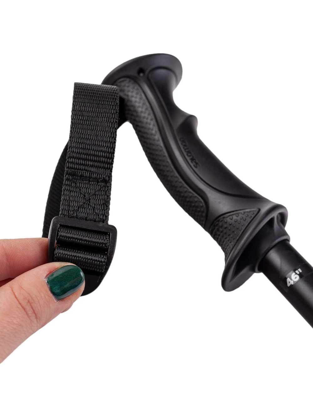 Regulowany pasek na nadgarstek umożliwia precyzyjne i szybkie dopasowanie do indywidualnych wymiarów narciarza.