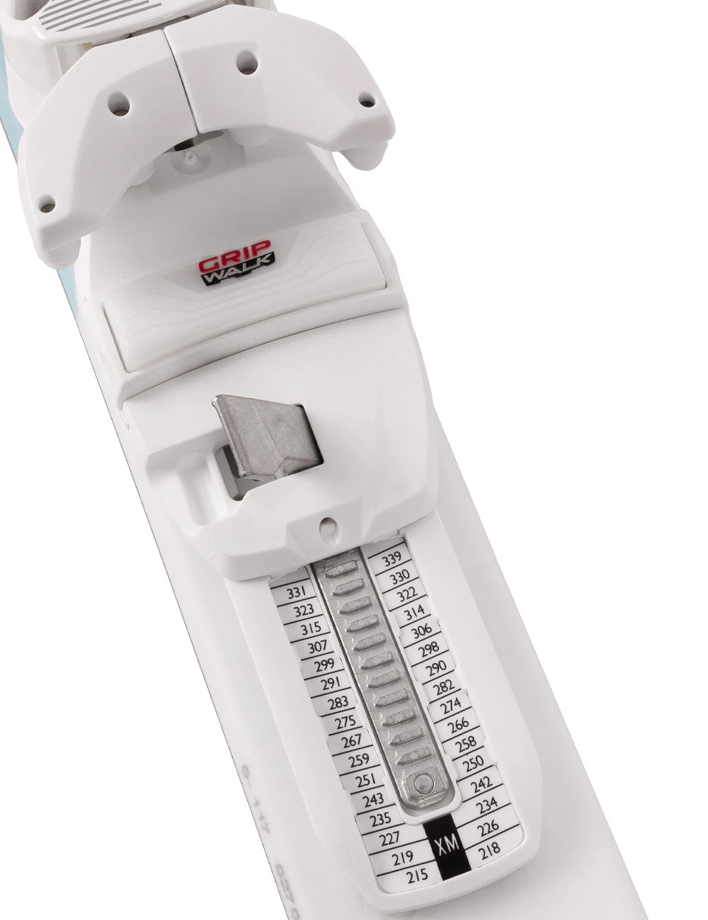 Takie rozwiązanie umożliwia beznarzędziowe ustawianie rozstawu do butów narciarskich w zakresie 215 – 339 mm.