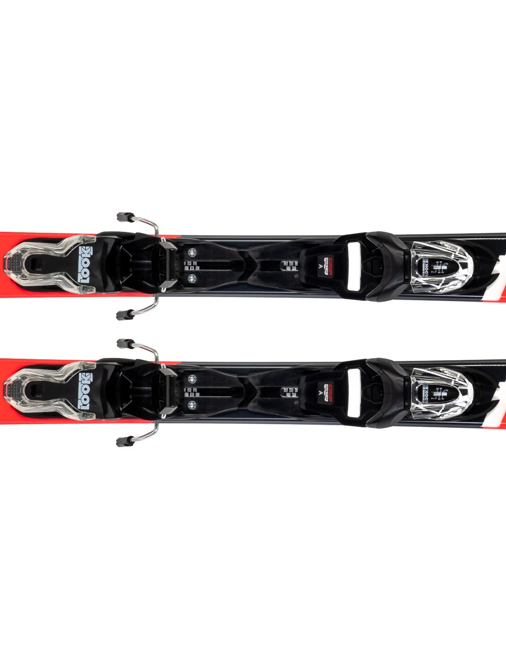 Narty Rossignol Hero Jr zestawiono z wiązaniami Look Xpress 7, które montowane są na dodatkowej płycie pod wiazaniem umożliwiającej beznarzędziową regulację do butów narciarskich w zakresie długości skorupy 261-327 mm.
