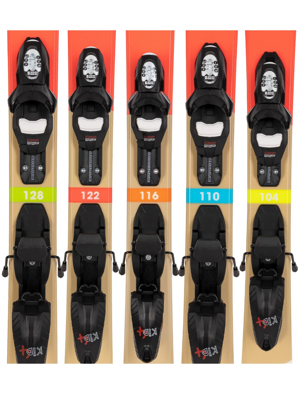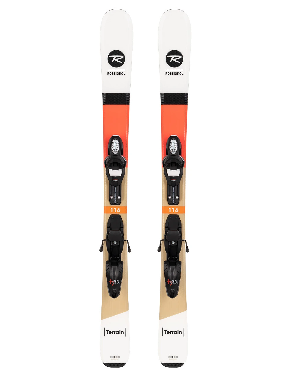 Narty Rossignol Terrain zestawiono z wiązaniami Look Kid 4, które zakładane są płytę, umożliwiającą regulację beznarzędziową do butów narciarskich w zakresie 205 – 304 mm.