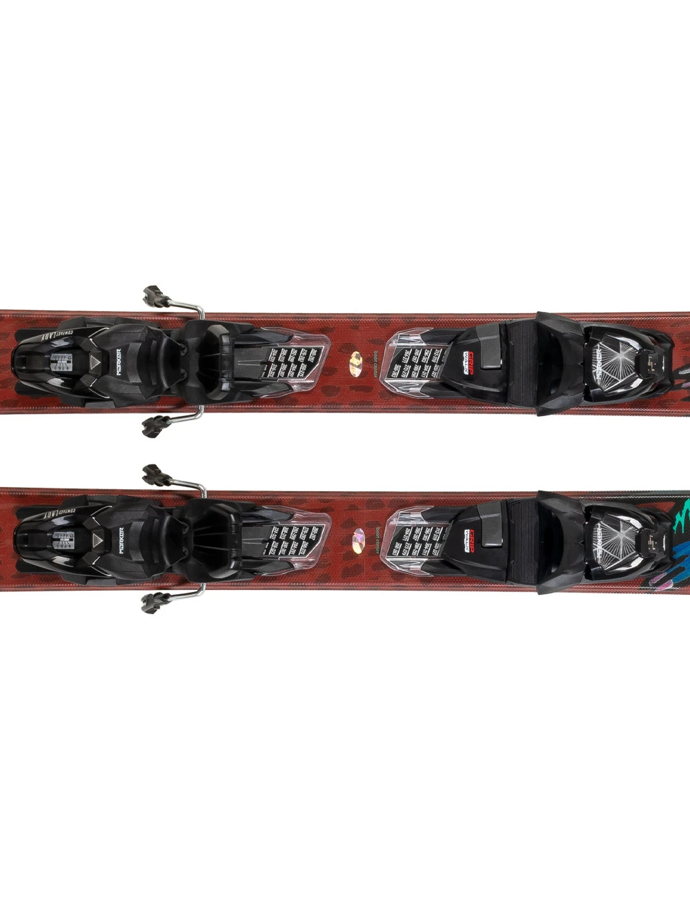 Wiązania montowane na płycie z manualną regulacją rozstawu, która umożliwia szybkie ustawienie do butów narciarskich w zakresie od 260 do 388 mm. Zakres maksymalny rozstawu wiązań 388 mm jest wymiarem ponad standardowym, dając możliwość dopasowania wymiarów dla najwyższych Panów mierzących ponad 190cm z dużym rozmiarem buta narciarskiego.