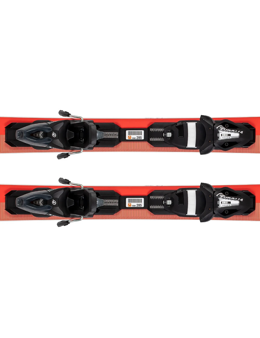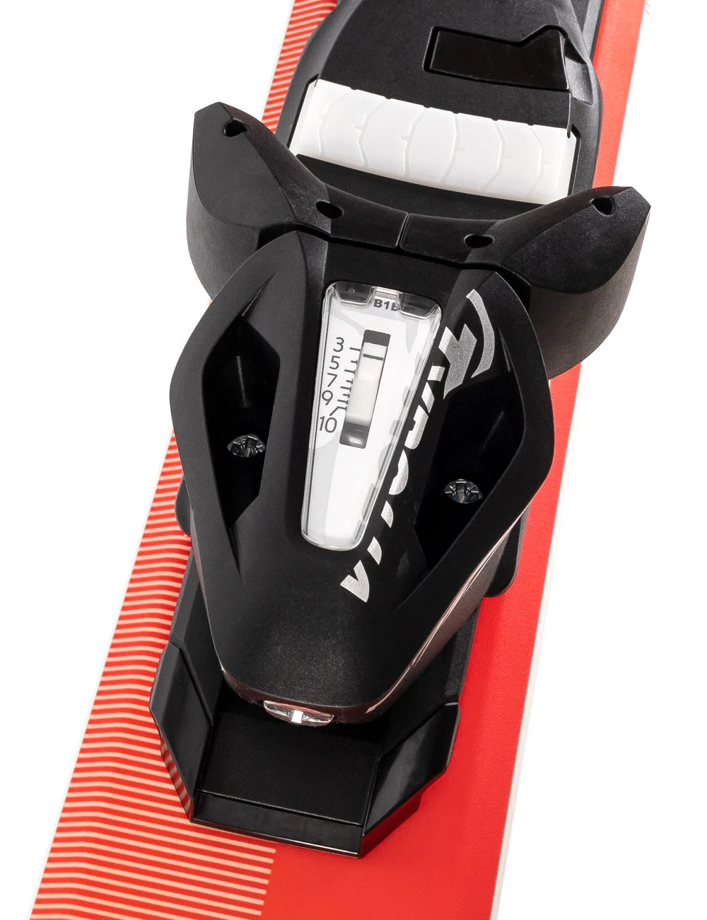 Narty zestawiono z wiązaniami TYROLIA PR 10 umieszczone na płycie szynowej, które można regulować do buta narciarskiego w zakresie rozstawu 259 – 382 mm
