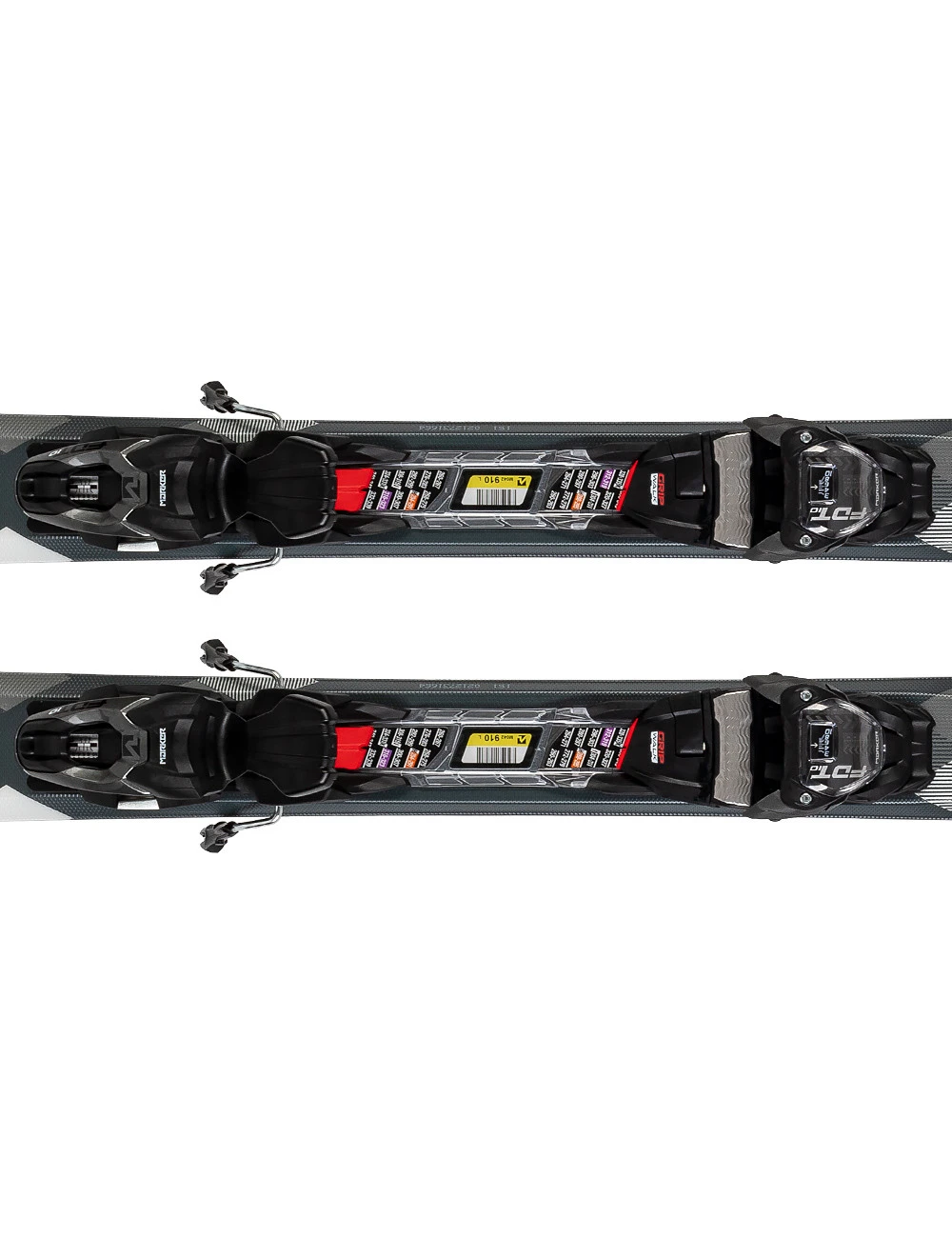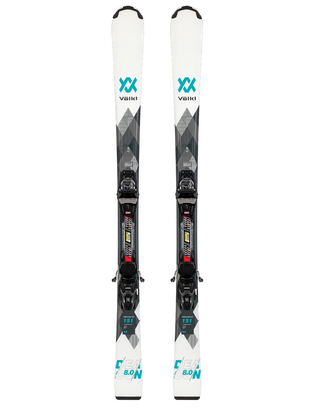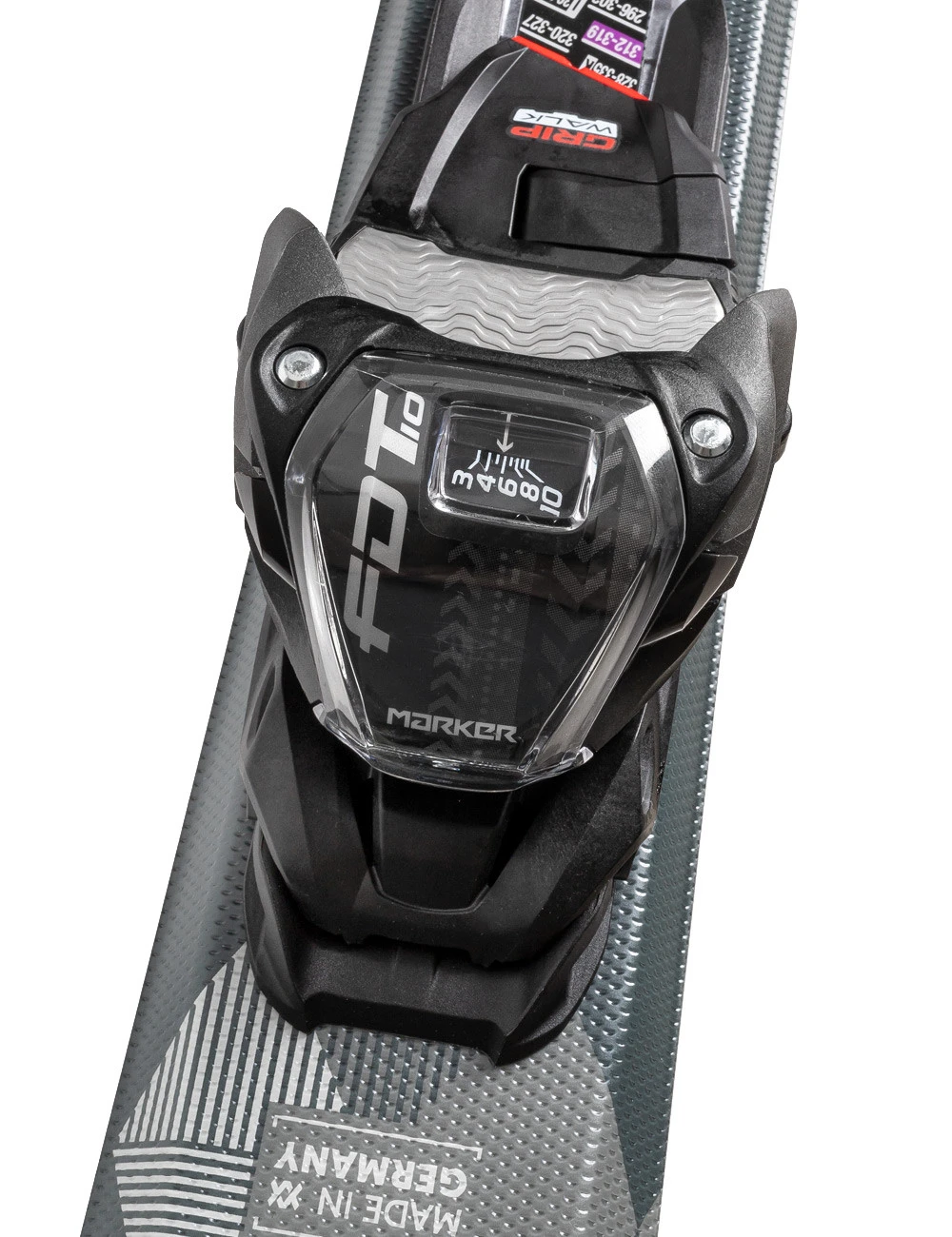 Volkl DEACON 8.0 zestawione są z wiązaniami narciarskimi Marker FDT 10.0 z zakresem siły wypięcia DIN 3 – 10. Wiązania montowane na dodatkowej płycie z manualną regulacją rozstawu, która umożliwia szybkie ustawienie do butów narciarskich w zakresie długości skorupy buta od 260 do 388 mm.