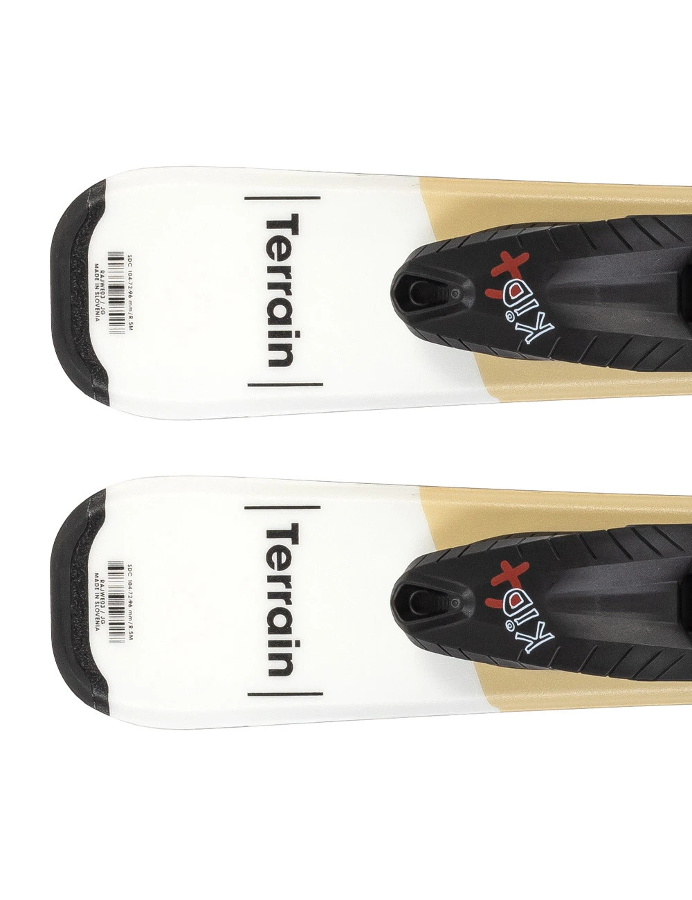 Narty Rossignol Terrain zestawiono z wiązaniami narciarskimi Look Xpress 4, montowane na dodatkowej płycie pod wiązaniem. Płyta umożliwia regulację beznarzędziową do butów narciarskich w zakresie długości skorupy buta narciarskiego 205 – 304 mm.