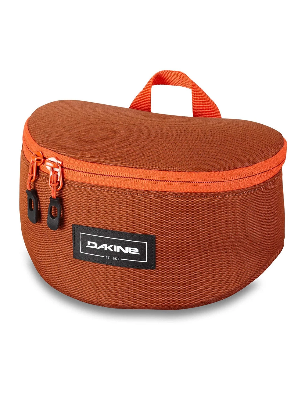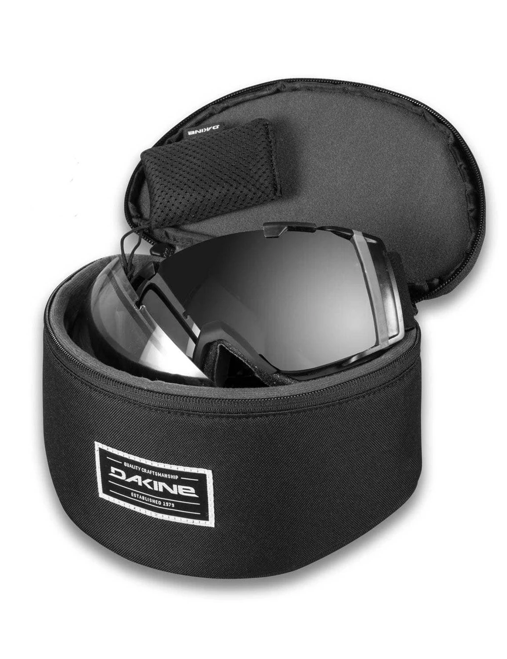 Dakine Stash to w pełni usztywniony pokrowiec na gogle. Wnętrze pokrowca pokryte zostało miękkim nierysującym gogli mikropolarowym materiałem. W środku znajdują się dwie przegrody na dodatkowe szyby, dwie małe siatkowe kieszonki na drobiazgi oraz odpinany woreczek na środek pochłaniający wilgoć. Etui bez problemu pomieści duże bezramkowe gogle. Szybki i łatwy dostęp gwarantuje dwustronny zamek.