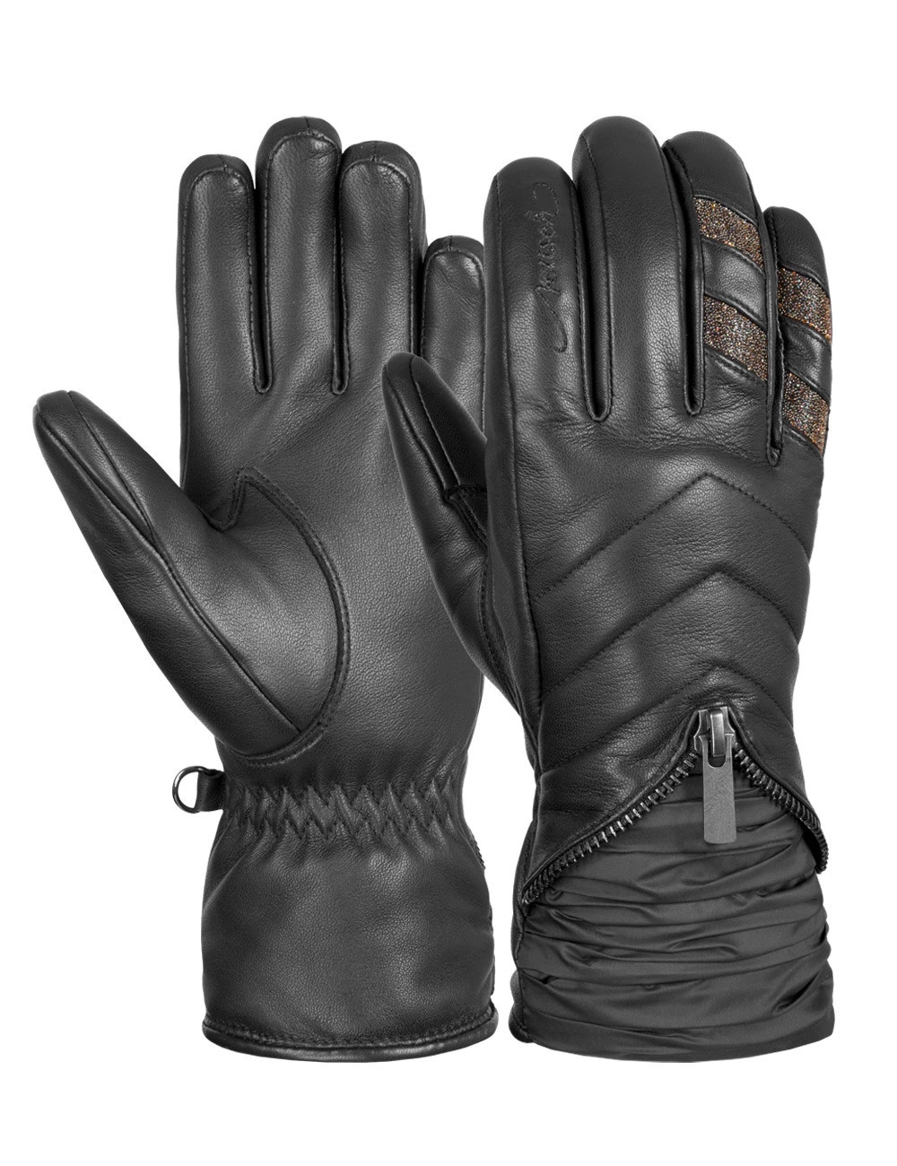 Rękawice Reusch Jackeline to nic innego jak doskonale dopasowane pięciopalczaste rękawice narciarskie pokryte naturalną kozią skórą. Dzięki temu rękawice są trwałe, miękkie w dotyku oraz wiatro i wodoszczelne i pomimo upływu lat, który może odbić się na wyglądzie zewnętrznym produktu nie wpływa on na jego wydajność. Model ten podelga impregnacji. Jackeline posiada również zamek błyskawiczny, który jednak spełnia tylko funkcję estetyczną, który komponuje sie z ręcznie wszystym plisowanym mankietem i kryształowymi zdobieniami Svarowskiego na palcach. Aspekt wizualny powoduje, że model ten z powodzeniem możemy traktować jako akcent modowy, który podkreśla charakter użytkowniczki.